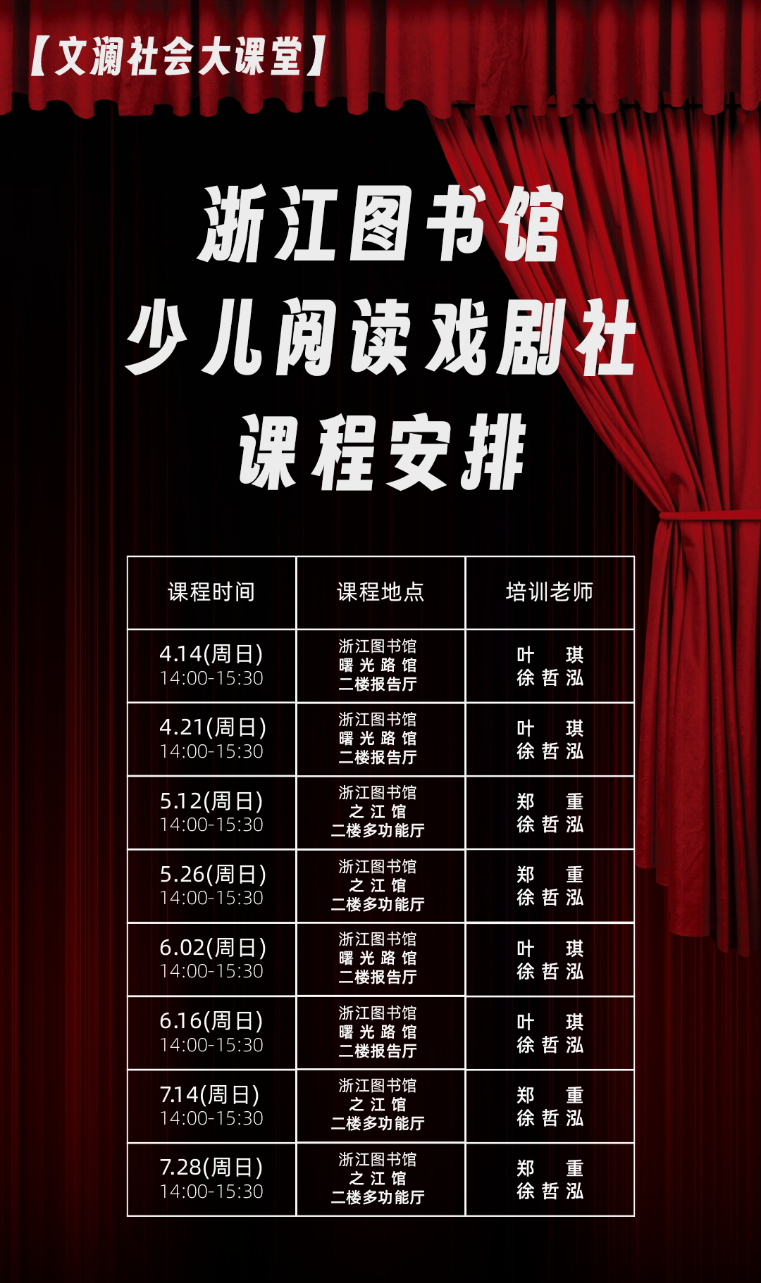 【文澜社会大课堂】 2024浙江图书馆少儿阅读戏剧社火爆进行中~