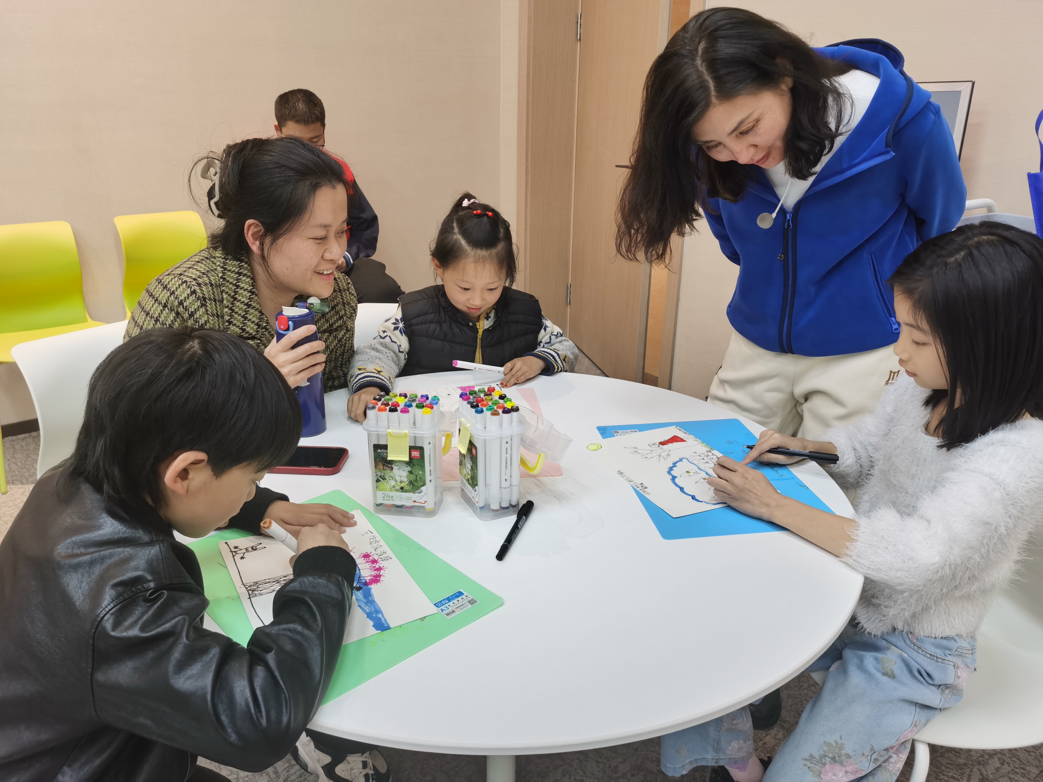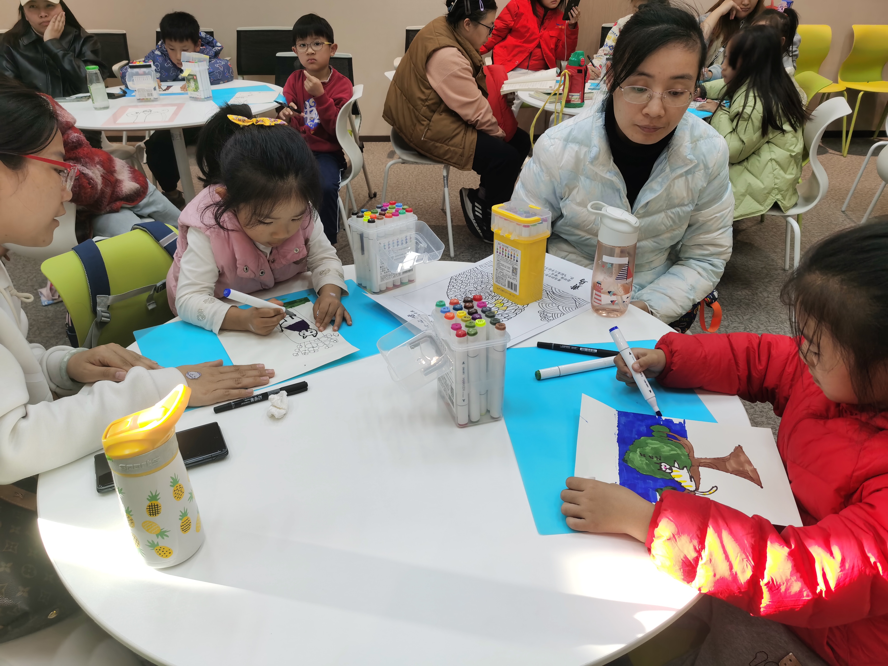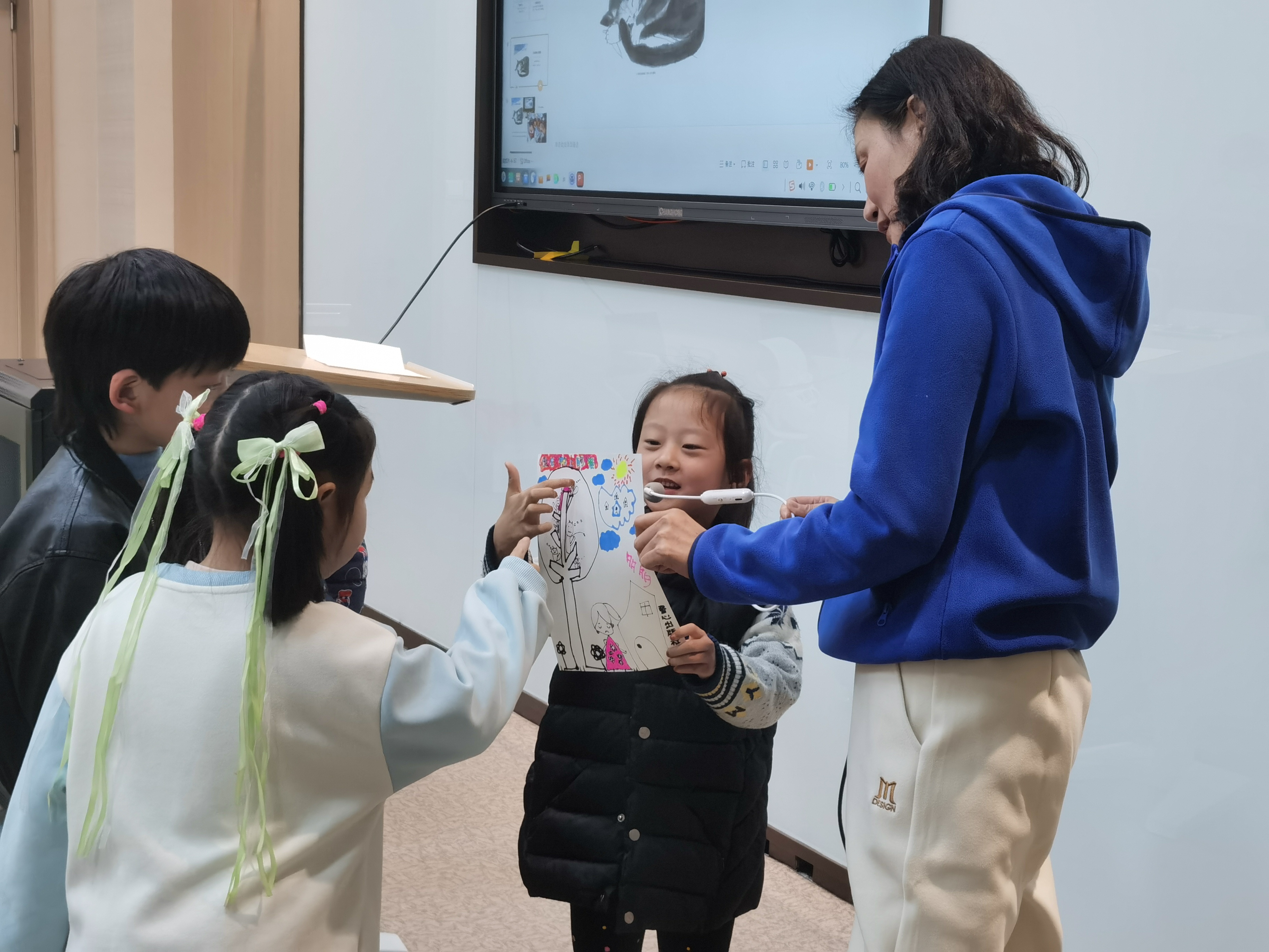 本场活动最终在小读者们对自己画作的介绍中结束。这样的环节不仅锻炼了孩子们的胆量,还能在潜移默化中培养其语言组织能力和表达能力,对成长多有助益。