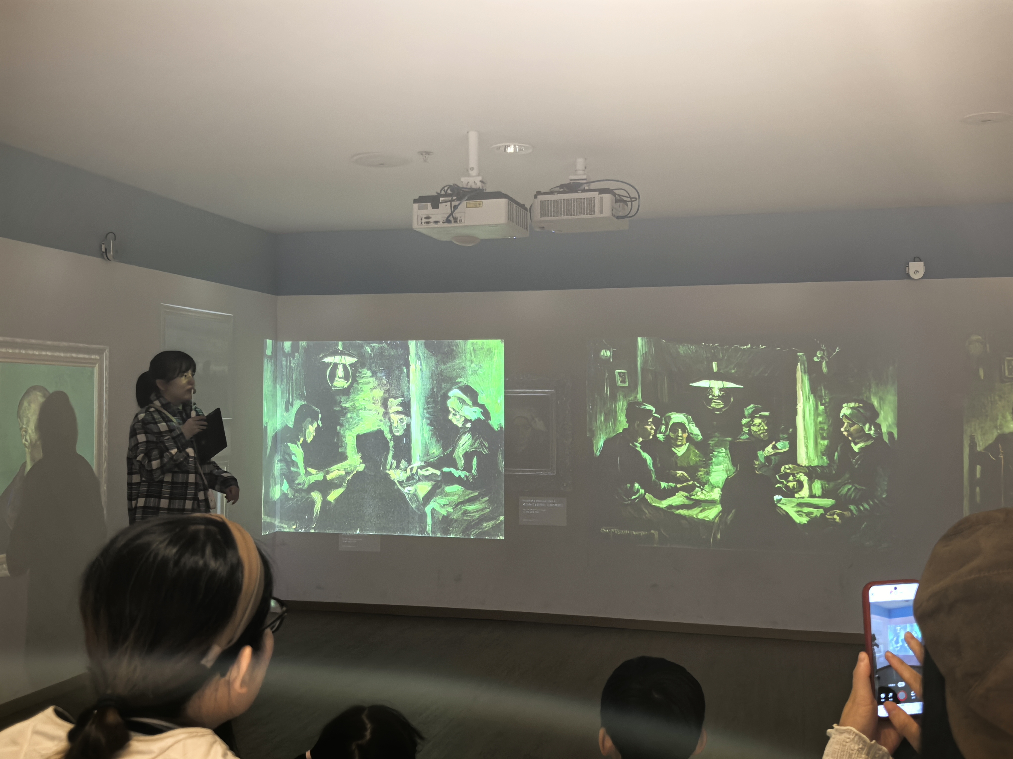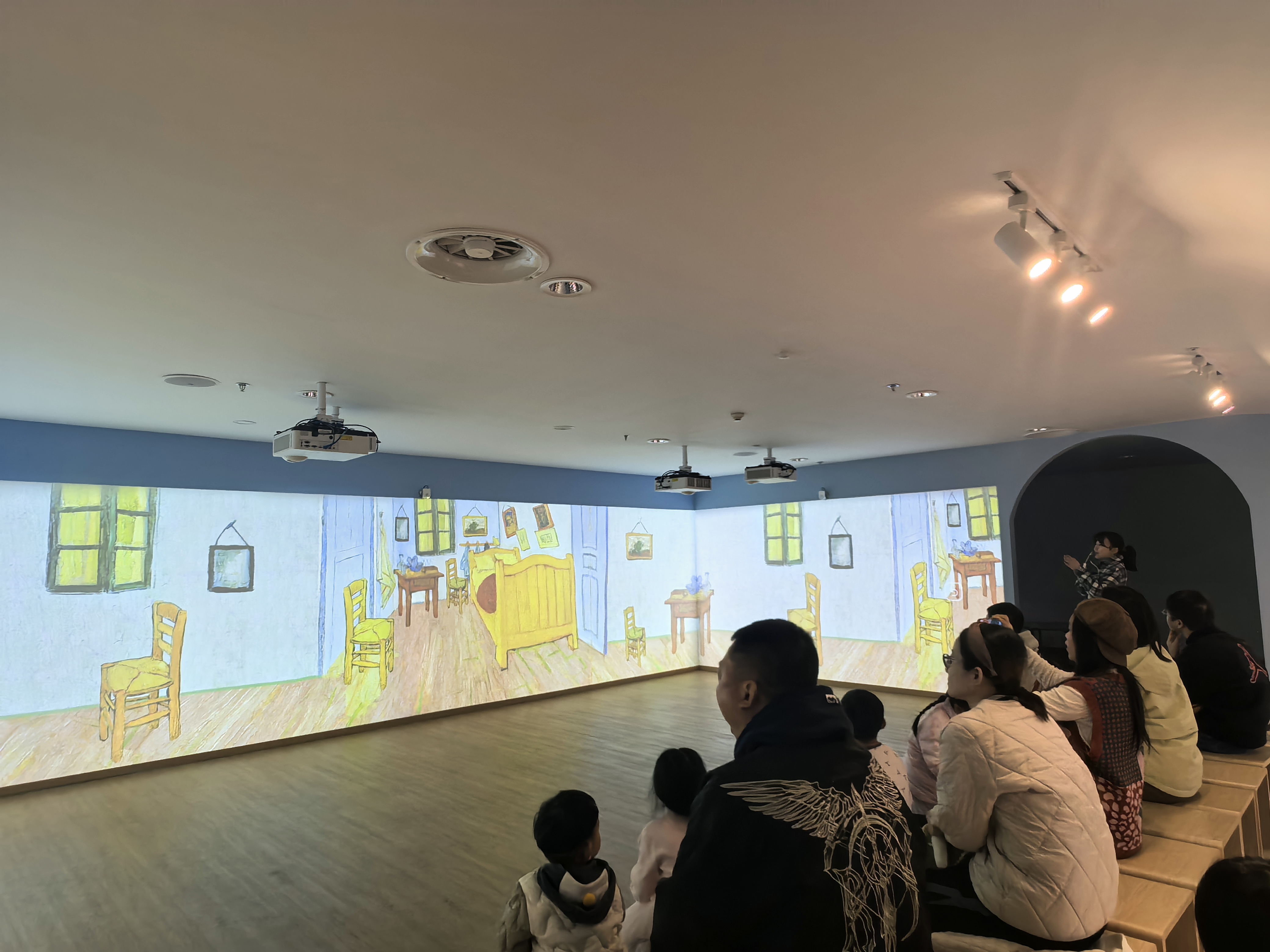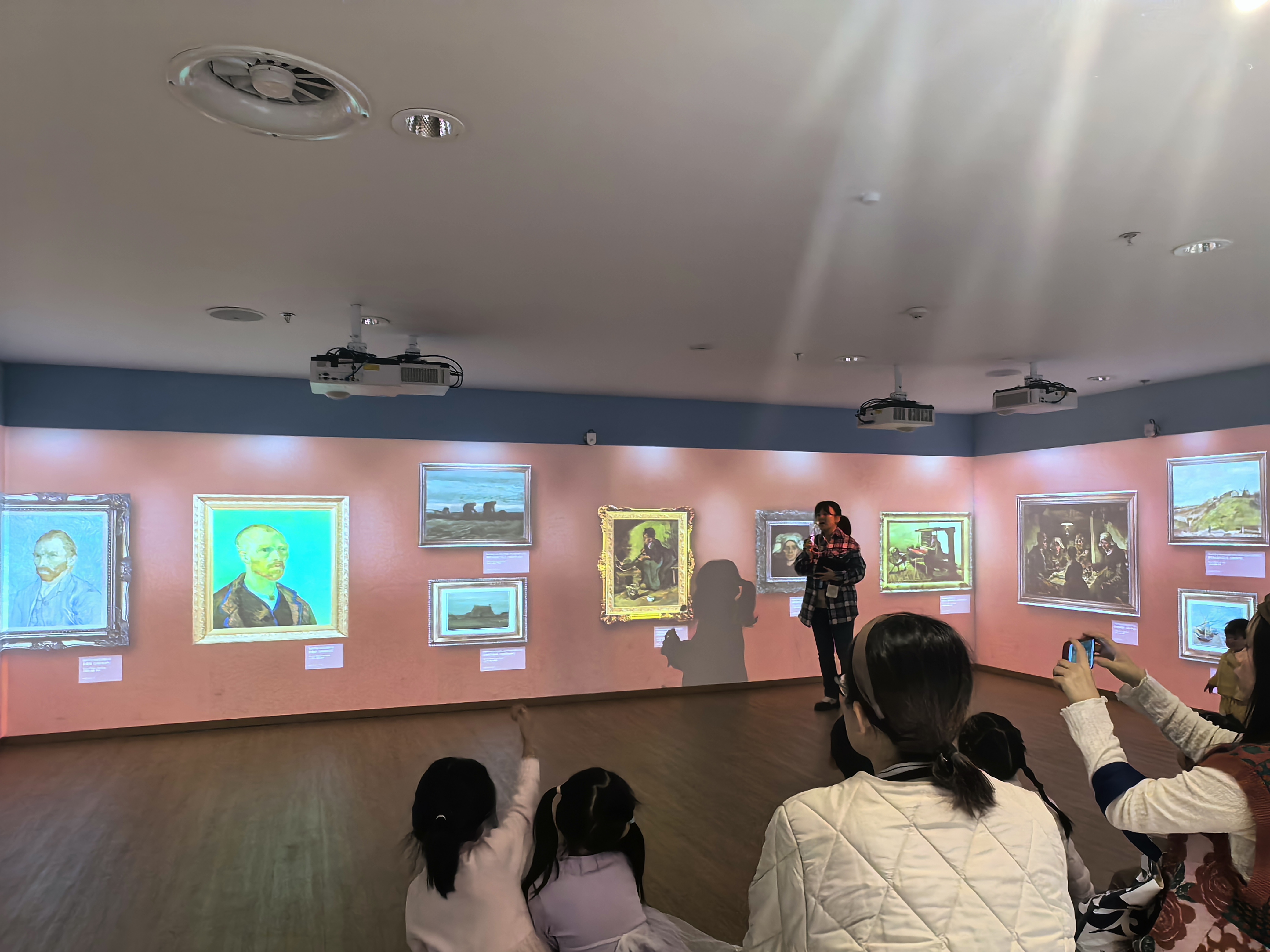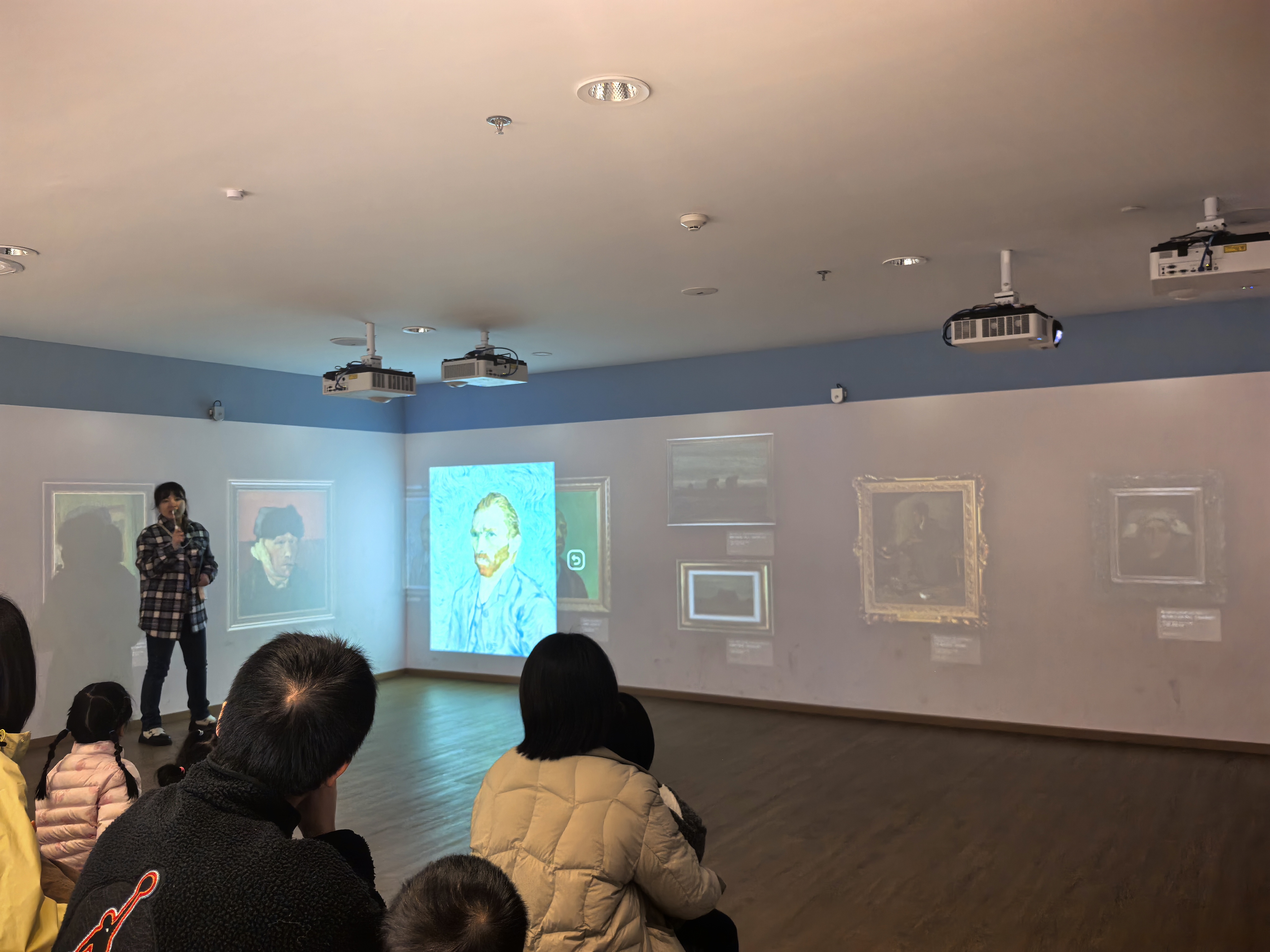 2025年11月22日上午,近20位热爱艺术的小读者和家长朋友共同来到浙江图书馆之江馆二楼的光影阅读星球,在这个由三面环绕屏幕所打造的艺术空间,跟随时间的脚步,度过了梵高的一生。